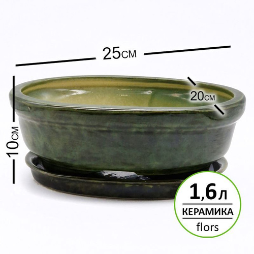 Горшок керамический 25x20x10 см, 1,6л, N 4 зеленый для кактусов, суккулентов и бонсай