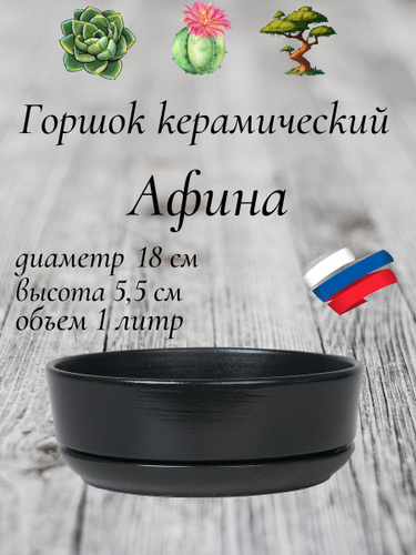 Керамический горшок "Бонсай - Афина" для бонсай, кактусов и суккулентов, диаметр 18 см, высота 5,5 см, черный