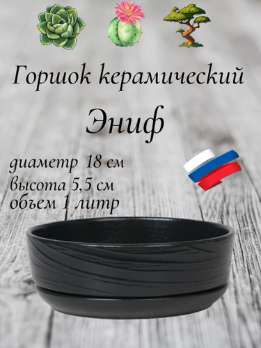 Керамический горшок "Бонсай - Эниф" для бонсай, кактусов и суккулентов, диаметр 18 см, высота 5,5 см, черный