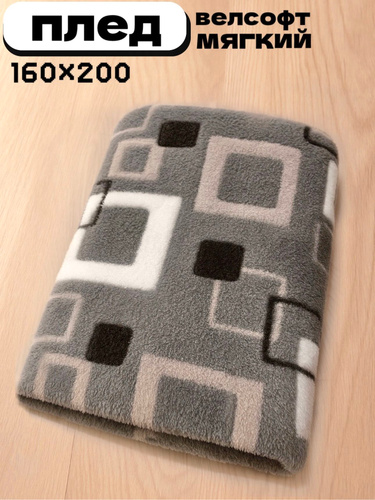 Плед мягкий, плюшевый, для домашнего уюта, с рисунком "Серые квадраты", 160х200 cм