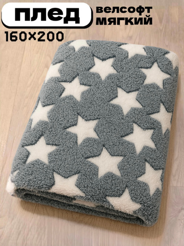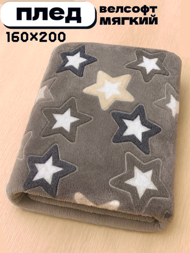 Плед мягкий, плюшевый, для домашнего уюта, с рисунком "Звёздочки серо-белые", 180x200 cм