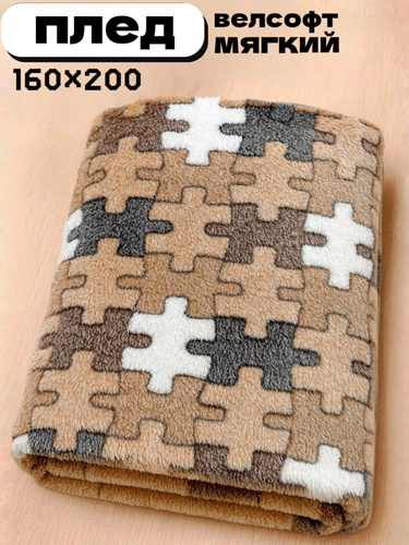 Плед мягкий, плюшевый, для домашнего уюта, с рисунком "Пазлы", 160x200 cм