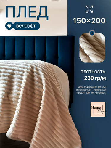 Плед на кровать мягкий плюшевый 150х200 Велсофт Бежевый