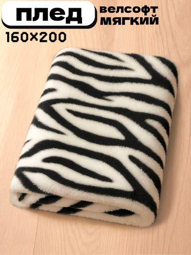 Плед мягкий, плюшевый, для домашнего уюта, с рисунком "Зебра", 160х200 cм