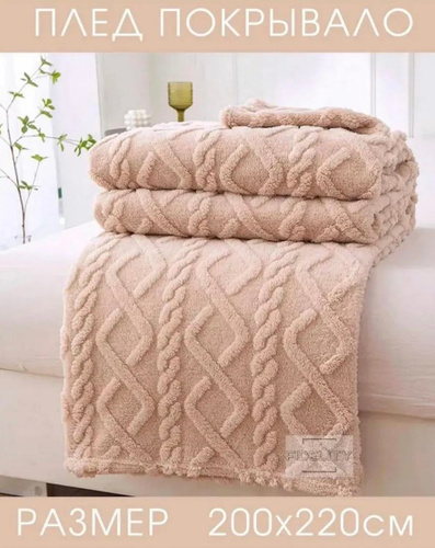Плед покрывало Косичка, Плюшевый, Мягкий, размер 200х220см Евро