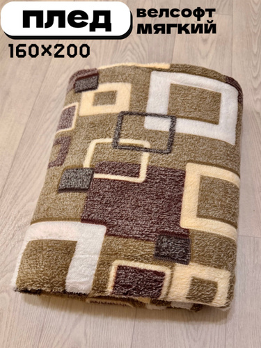 Плед мягкий, плюшевый, для домашнего уюта, с рисунком "Коричневые квадраты", 160х200 cм