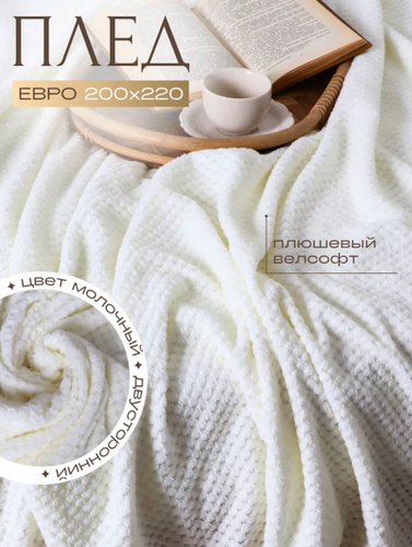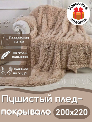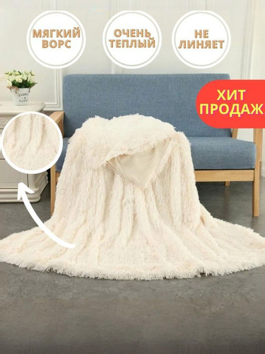 UyutDOM Плед пушистый мягкий Евро на кровать и диван 200х230