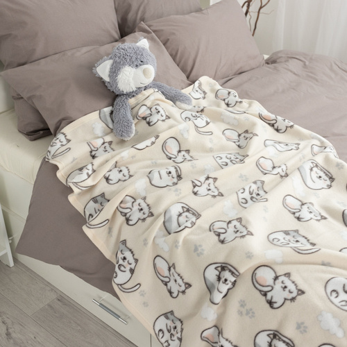Плед детский котики 1,5 спальный мягкий флисовый Wellness 100х150 см, кремовый