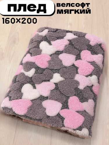 Плед мягкий, плюшевый, для домашнего уюта, с рисунком "Сердечки", 160х200 cм