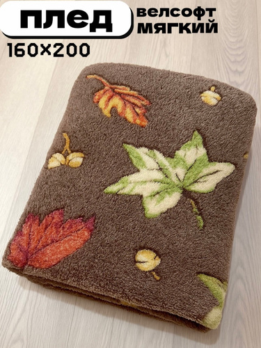 Плед мягкий, плюшевый, для домашнего уюта, с рисунком "Листья", 160х200 cм