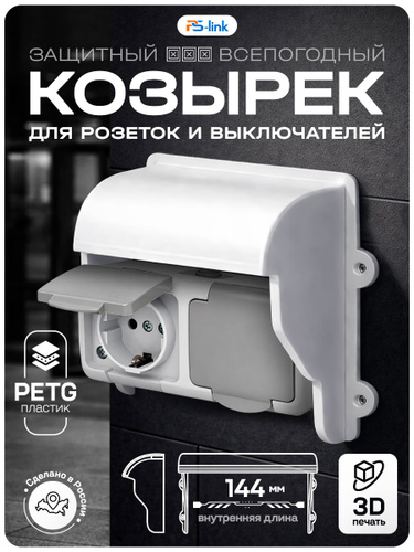 Уличный козырек закрытый для двух розеток, выключателей, белый цвет, 3D-печать, пластик