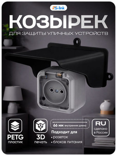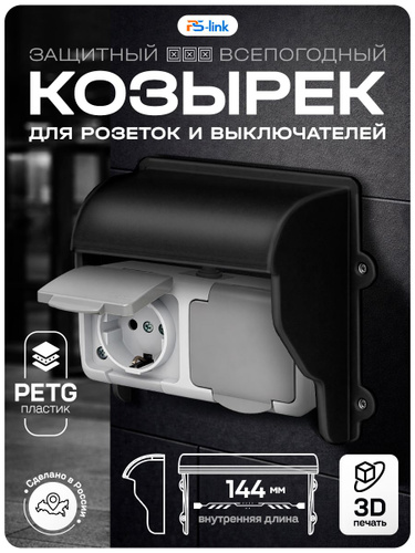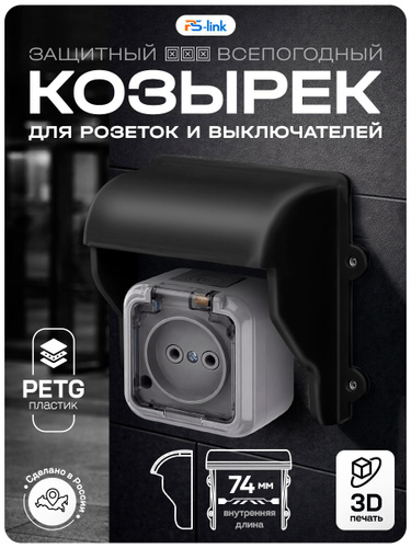 Уличный козырек закрытый для розетки, выключателя, черный цвет, 3D-печать, пластик