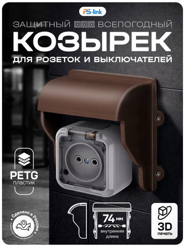 Уличный козырек закрытый для розетки, выключателя, коричневый цвет, 3D-печать, пластик