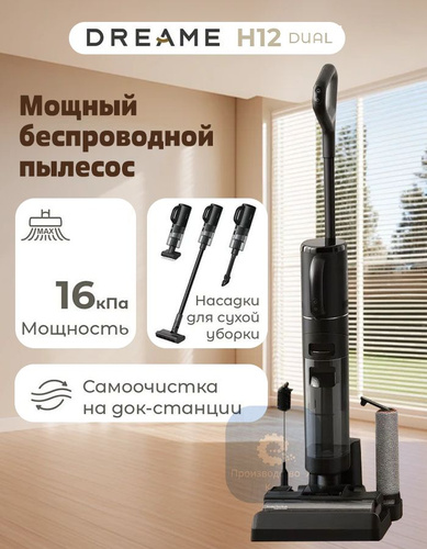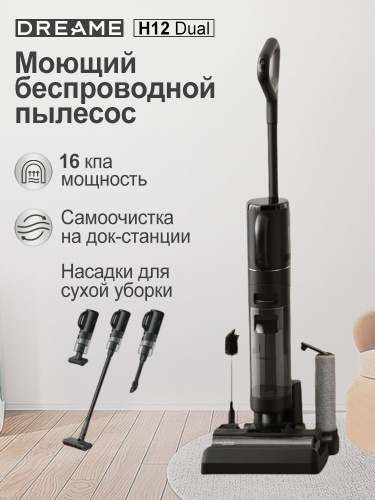 Моющий пылесос вертикальный беспроводной Dreame Wet and Dry Vacuum h12dual 4в1 для дома, для влажной и сухой уборки, Функция сушки, с функцией самоочистки