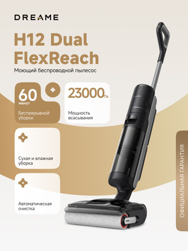 Моющий беспроводной пылесос Dreame Wet and Dry Vacuum H12 Dual FLEXREACH для сухой и влажной уборки до 60 минут, 23000 Па, 4 насадки, аккумулятор 4000 мАч, самоочистка, контейнеры 780мл и 700мл