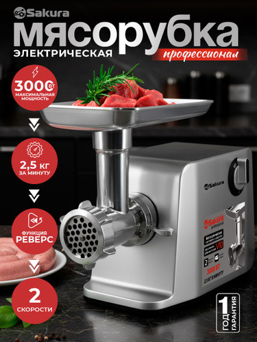 Мясорубка электрическая 2400Вт Sakura SA-6425G с насадками