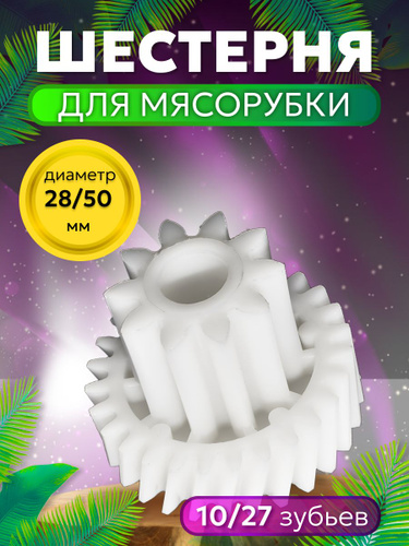 Шестерня для мясорубки. Усиленная средняя пластиковая шестеренка привода - 1 шт. Запчасти для ручной и электрической мясорубки и кухонного комбайна. Размер 48 х 50 мм. Зубцы косые 27 / прямые 10 шт.