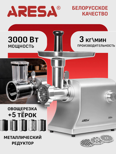 Мясорубка электрическая с насадками для овощей металлическая мощная ARESA AR-2113, 3000 Вт, с овощерезкой