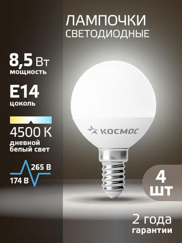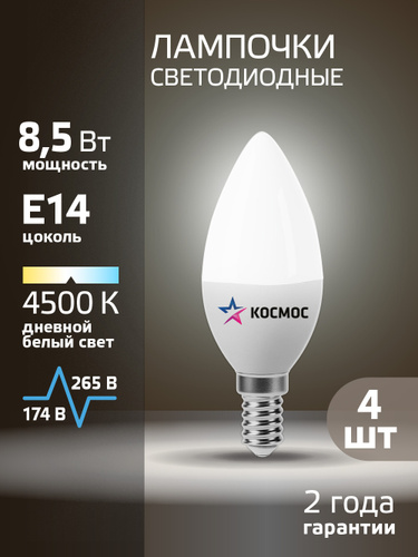 Светодиодные лампочки Е14 8,5 ВТ дневной свет 4 шт