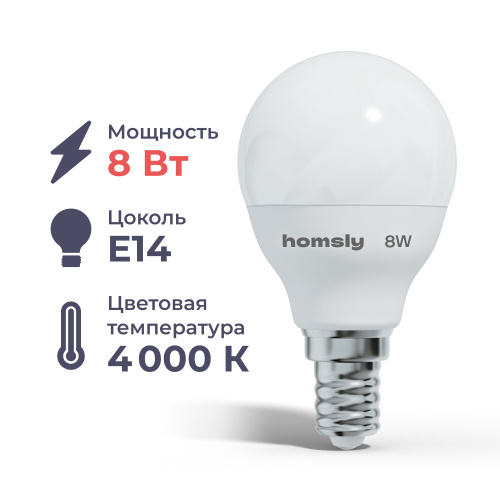 Светодиодная лампа Е14 8 Вт, 4000К