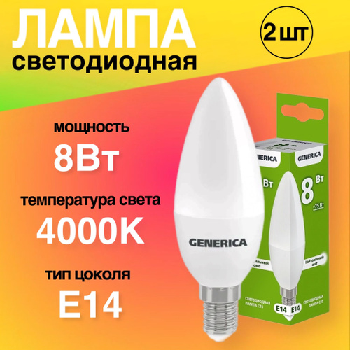 Лампочка светодиодная Е14 LED 8Вт свеча 4000К 800Лм 2 штуки матовая C35 230В Нейтральный белый свет