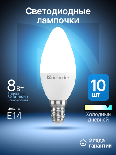 Светодиодные лампочки Е14 8,5 ВТ дневной свет 10 шт