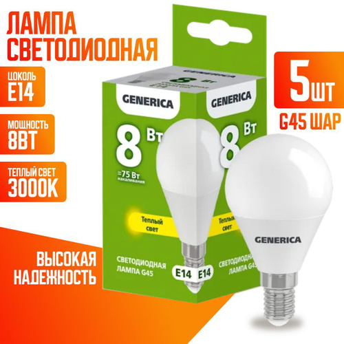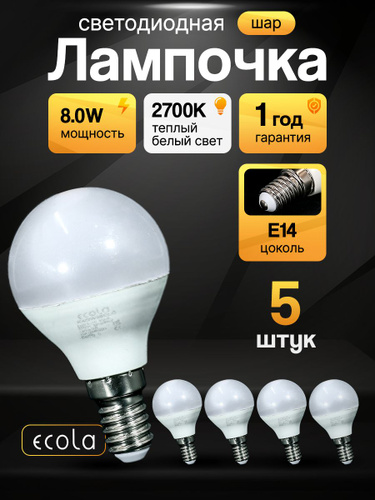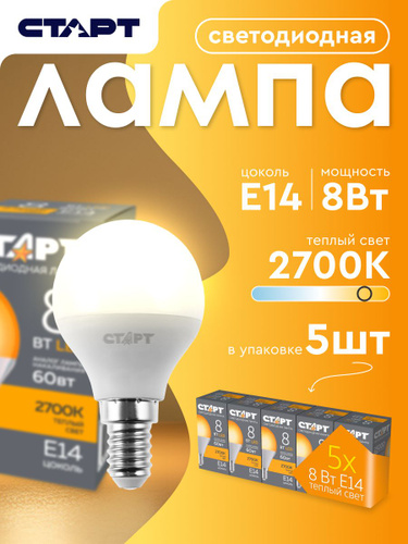 Лампочка светодиодная Е14 "Шар" 8Вт теплый свет 5 штук