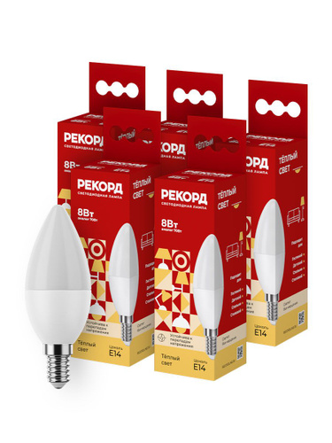 Светодиодные лампочки РЕКОРД B37-U 8 Вт e14 теплый свет, набор 5 шт.