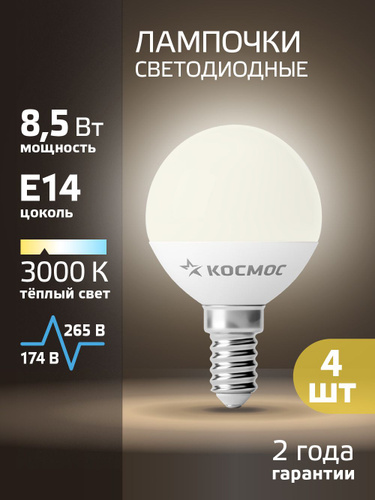 Светодиодные лампочки Е14 8,5 ВТ теплый свет 4 шт