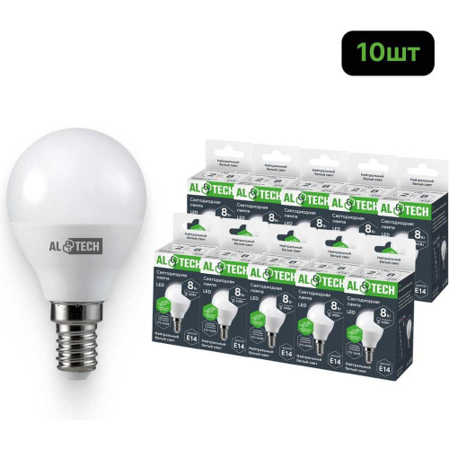 Лампочка светодиодная ALTECH LED G45-8W-840-Е14 8Вт шарик нейтральный белый свет 10шт 4673758071491