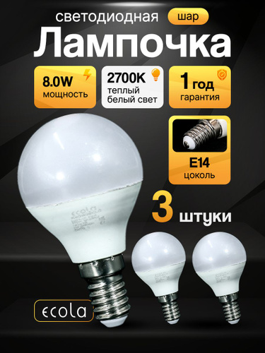 Лампочка светодиодная шарик 8Вт Е14 3000К теплый свет 1шт