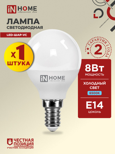 Лампочка светодиодная LED-ШАР-VC 8Вт 230В Е14 6500К 760Лм IN HOME