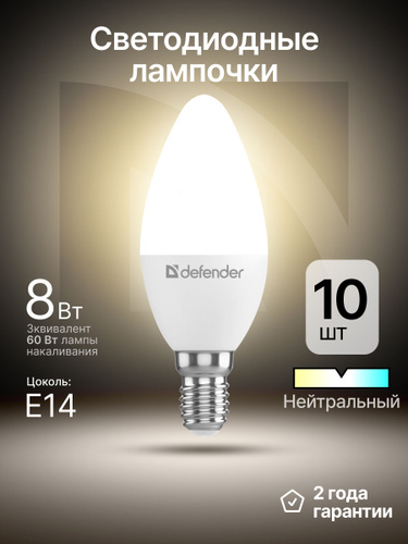 Лампочка светодиодная Е14 "Свеча" 8Вт 4000К нейтральный свет 1 штука