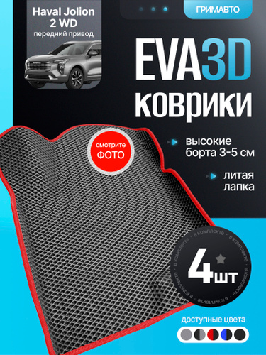 Коврики Хавал Джолион (Haval Jolion) / 2WD передний привод / ЭВА, ЕВА, EVA 3Д с бортами / в салон / красный кант / ГРИМАВТО