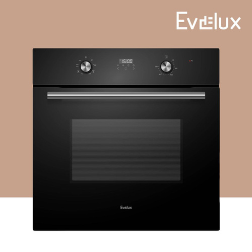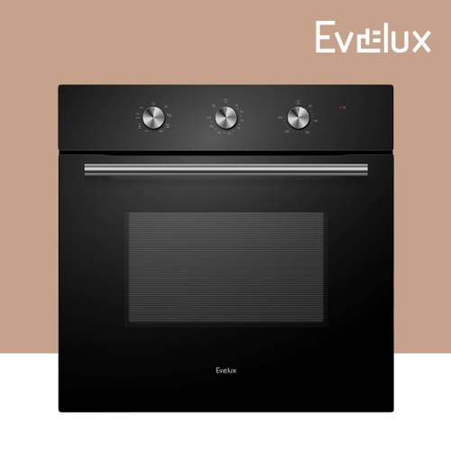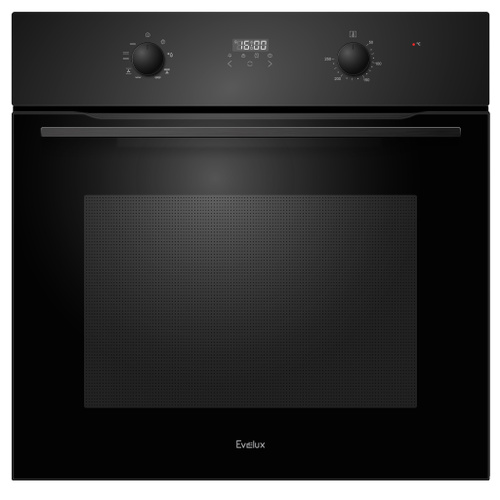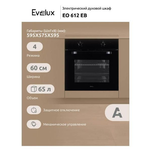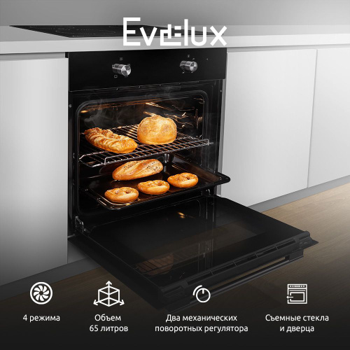 Электрический духовой шкаф EVELUX EO 612 EB, 59.5 см, 65 л, 4 режима, традиционная очистка, черный