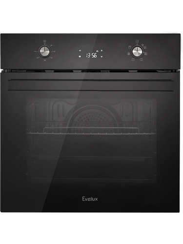 Электрический духовой шкаф EVELUX EO 622 EB, 60 см, 65 л, 8 режимов, гриль, конвекция, черный