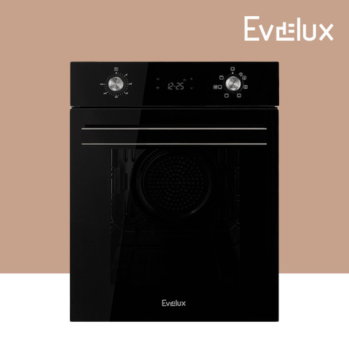 Электрический духовой шкаф Evelux EO 640 PB, 60 см, 65 л, 7 режимов, гриль, конвекция, традиционная очистка, чёрный