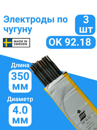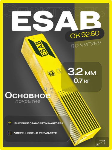 Электроды по чугуну ОК 92.60 ( NiFe-Cl ) , Д. 3,2 мм 0,7 кг ESAB, Швеция