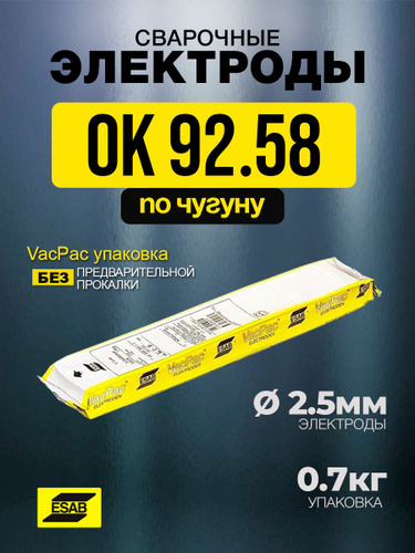 Электроды по чугуну ОК 92.58, Д. 2,5 мм 0,7 кг ESAB, Швеция