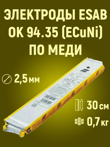 Электроды ESAB OK 94.35 д. 2,5 мм уп. 0,7 кг (ECuNi) по меди (Швеция)