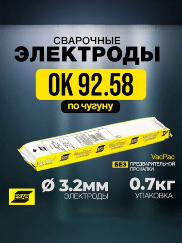 Электроды по чугуну ОК 92.58 ( NiFe-Cl-A ), Д. 3,2 мм 0,7 кг ESAB