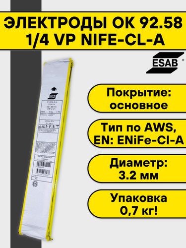Электроды по чугуну OK NiFe-Cl (OK 92.60) 3,2мм VP (уп.0,7кг) "ESAB"
