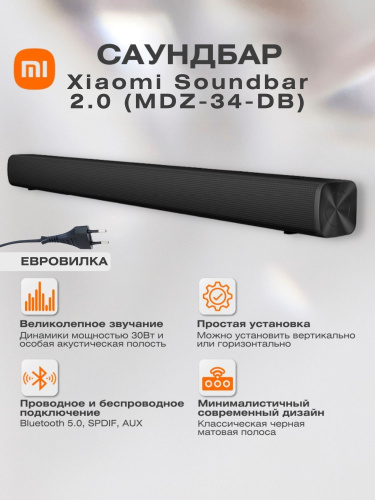Саундбар Xiaomi Soundbar 2.0 для телевизора, ноутбука, планшета. Черный MDZ-34-DB