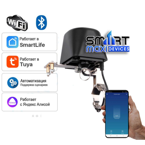 Умный клапан-привод Wi-Fi Tuya на кран для перекрытия воды или газа с Алисой. Электропривод для умного дома.
