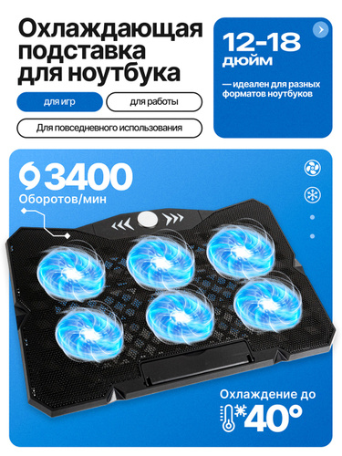 Охлаждающая подставка для ноутбука, регулируемая, 15.6, 17.3, 18 дюймов