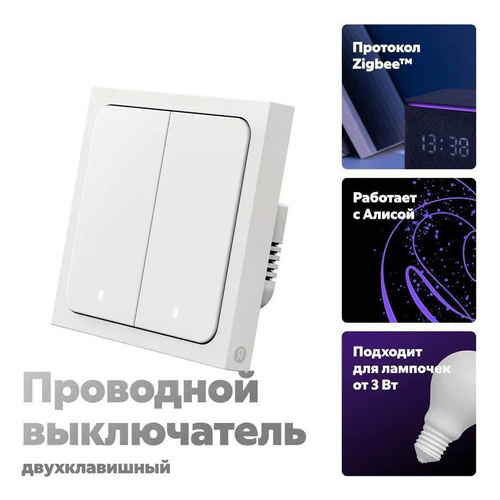 Умный выключатель Яндекс, 2 клавиши, Zigbee (YNDX-00532)