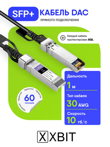 DAC кабель XBIT SFP+ 1 м, 10G, пассивный, совместим с Cisco