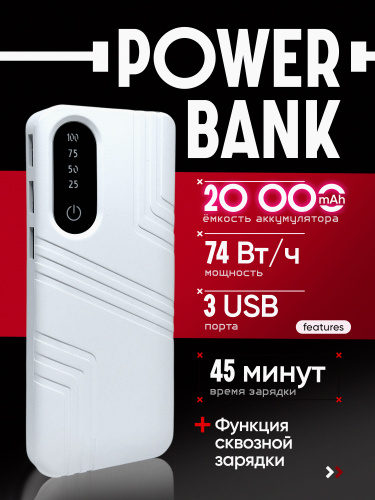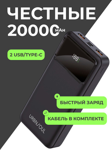 Повербанк 20000mAh с быстрой зарядкой; Powerbank 20000; павербанк портативный внешний аккумулятор, повер банк - черный