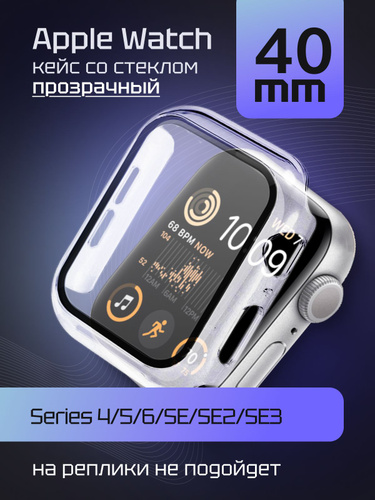 Защитный кейс со стеклом для Apple Watch 4, 5, 6, SE, SE2, SE2023, SE2024, SE3 40 мм, бампер со стеклом