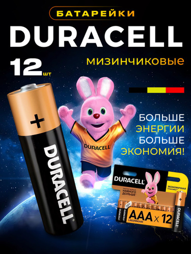 Duracell Батарейка AAA, L (щелочной) тип, 1500 мА•ч, 1,6 В, 12 шт